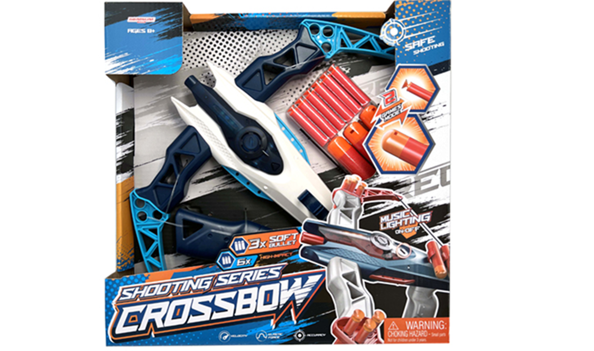 Готов ли си за стрелба? Този арбалет със светлинни и звукови ефекти носи вълнуващо преживяване за всяко дете. Комплектът включва 6 меки стрели, удобен дизайн и здрава конструкция. Арбалетът е създаден специално за безопасна игра – без остри елементи и с ефекти, които правят всяко изстрелване още по-забавно.