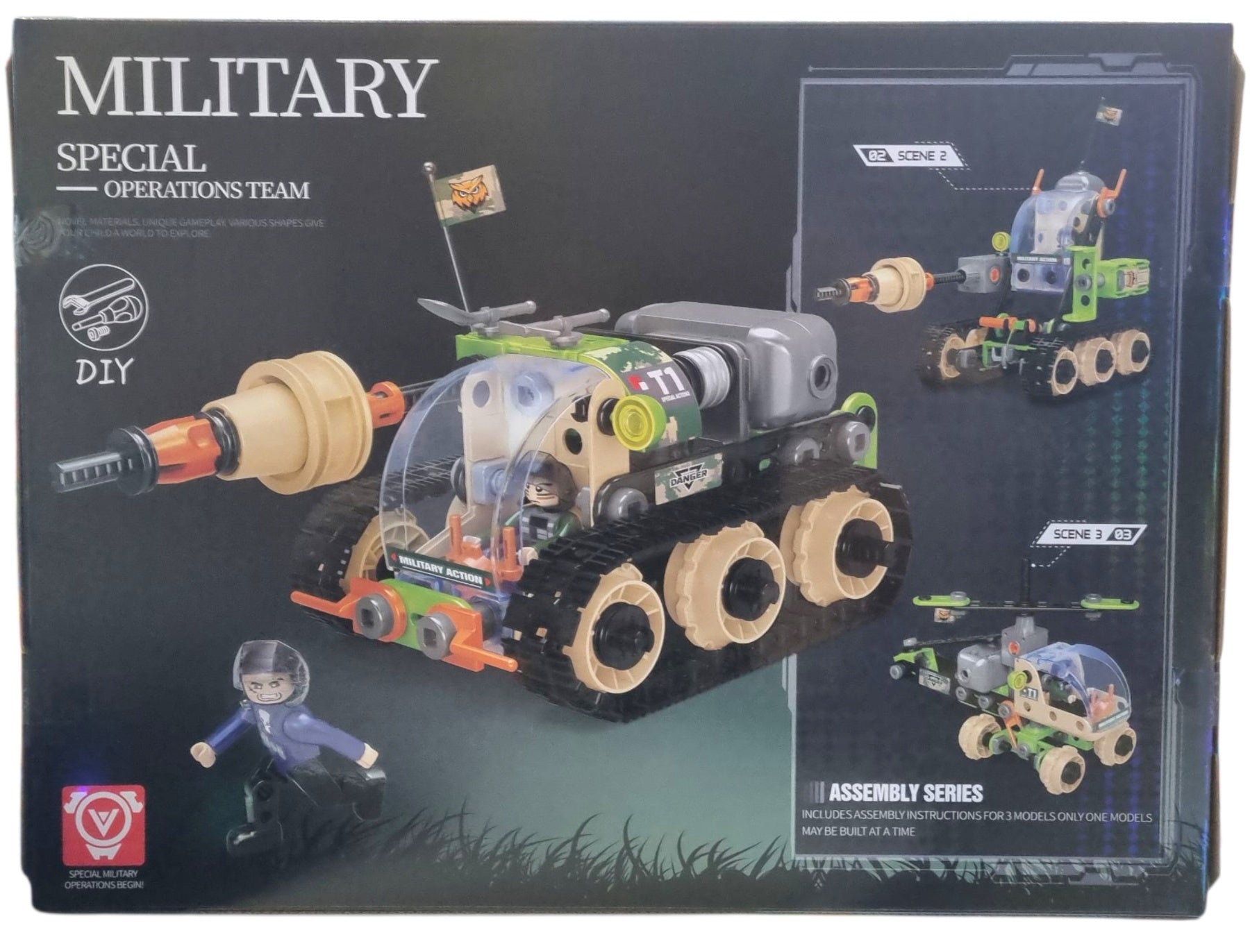 Комплектът от серията Military Special Operations включва всичко необходимо за сглобяване на три различни бойни машини – танк, хеликоптер и бойна машина с оръжие. Съдържа 185 части и фигурка на войник. Може да се сглоби само един модел наведнъж.