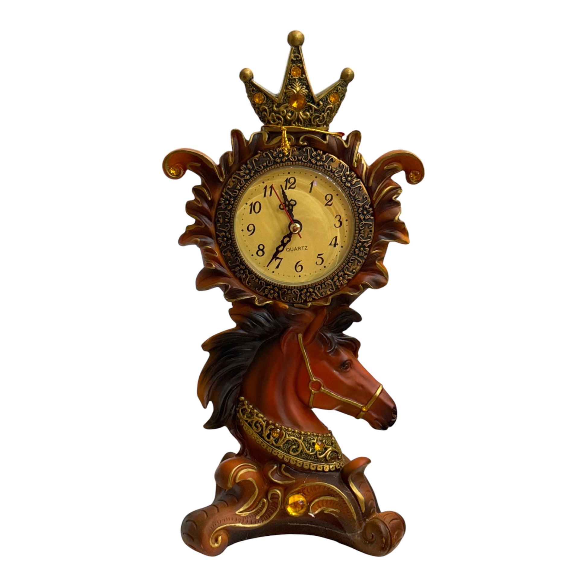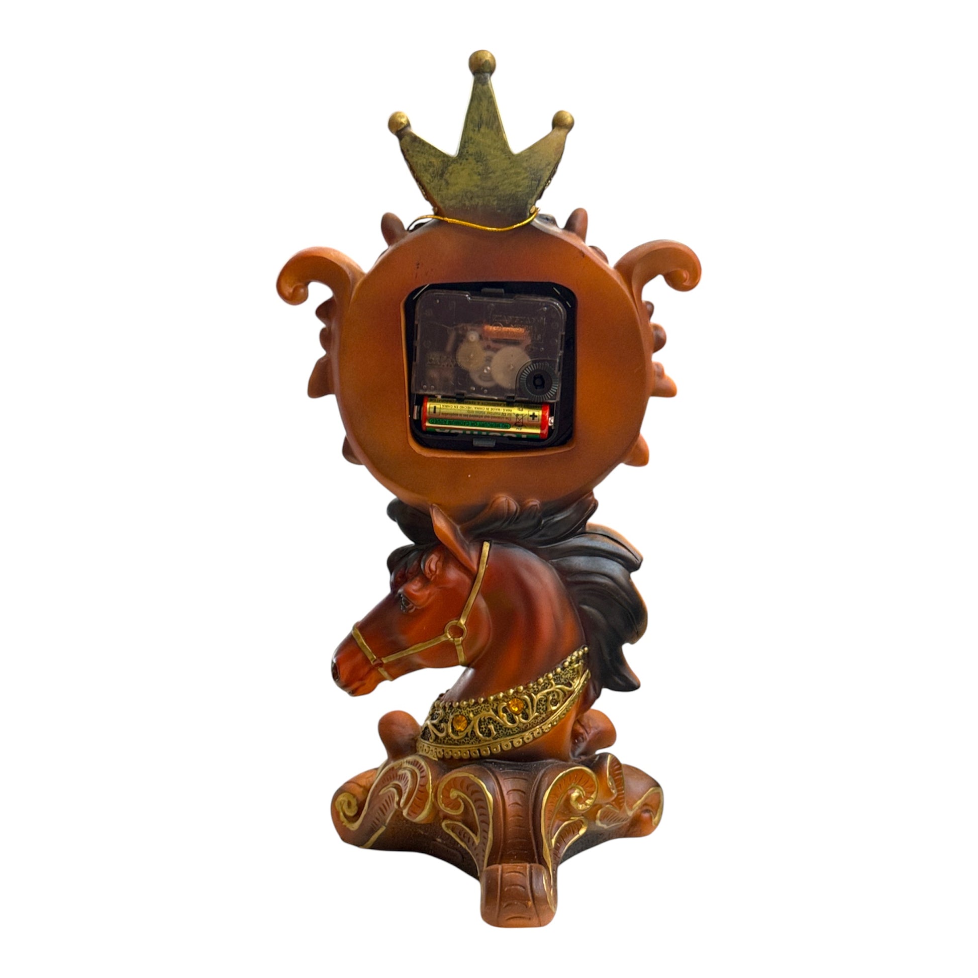 Елегантен декоративен часовник с дизайн на конска глава и кралска корона – символ на сила, класа и благородство.