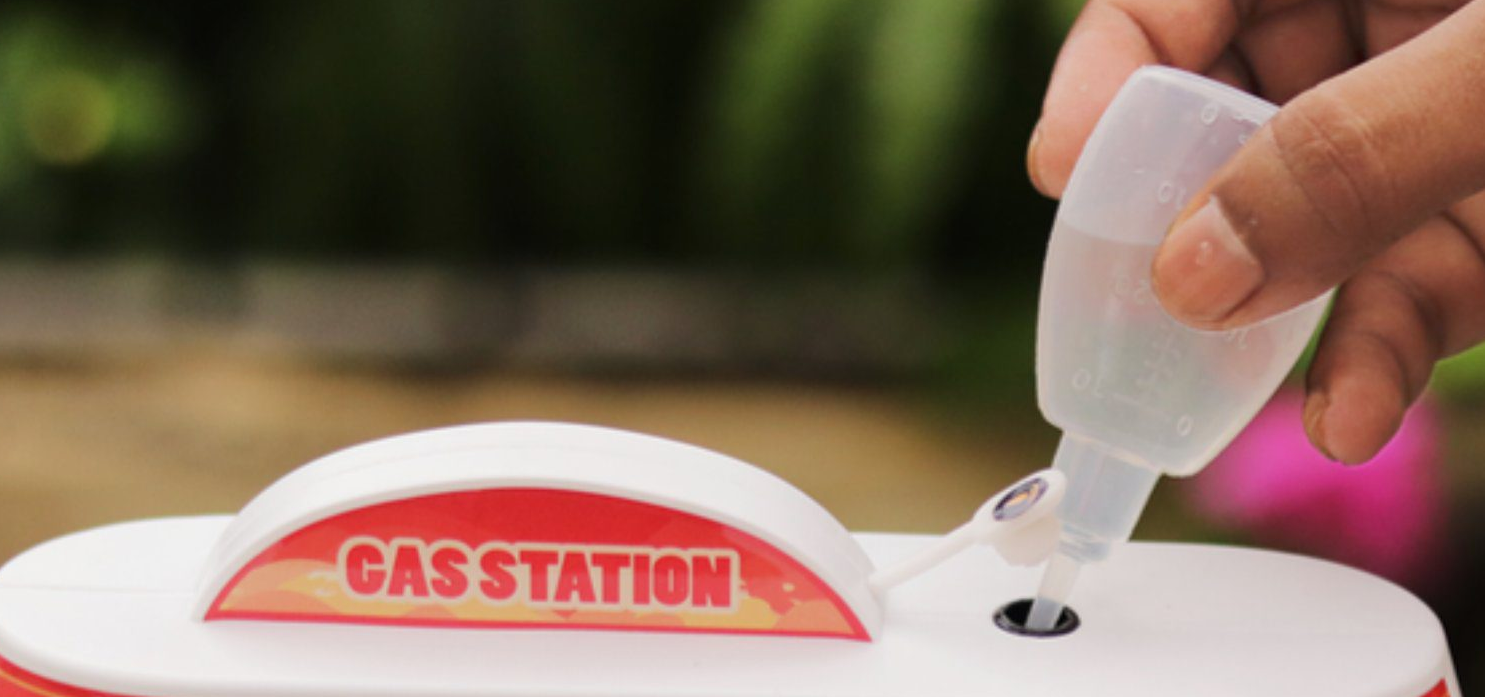 Този интерактивен комплект „Бензиностанция“ превръща играта в истинско преживяване. Детето може да зарежда автомобила, да натиска бутони, да чува звуци и да използва функция за пръскане на вода – точно като на истинска колонка.