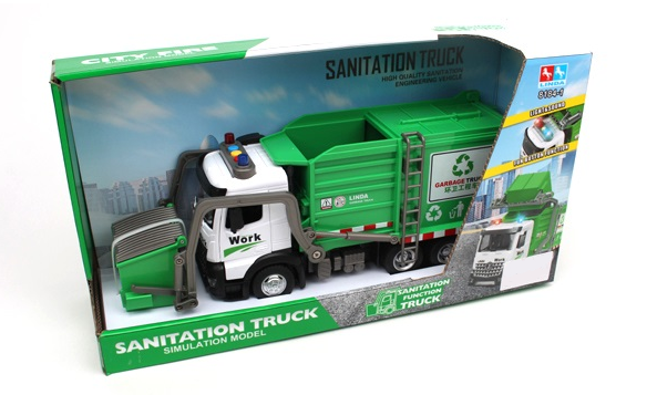 Реалистичен камион за боклук, вдъхновен от градските сервизни машини! Играчката впечатлява с детайлен дизайн, подвижен заден контейнер и здрав корпус, който издържа на активна игра.