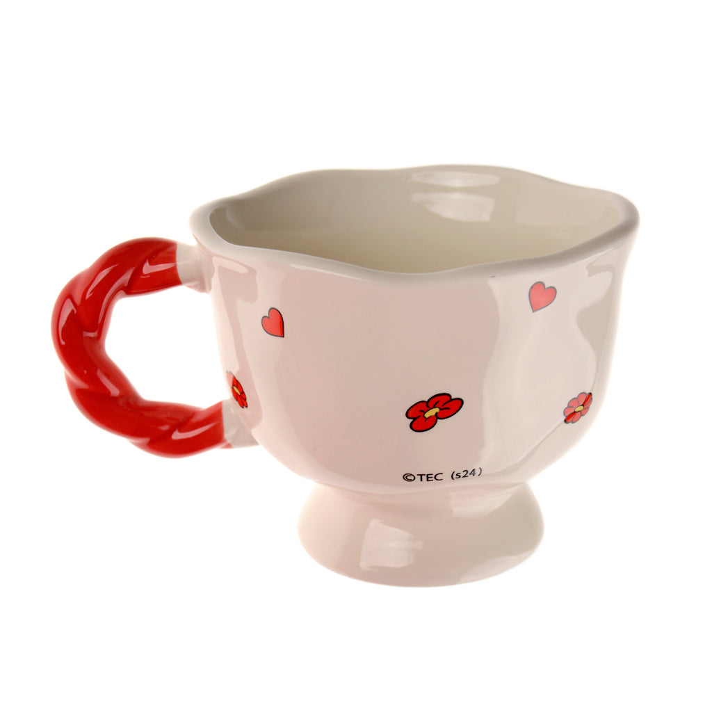 Ретро чаша за добро настроение – Tom & Jerry „Have a beautiful day“. Формата е леко вълнообразна, а червената дръжка стои като усукано въже и дава много характер. Отпред Том и Джери се гонят в класически стил, а в долната част пише „Have a beautiful day“ – идеално послание за сутрешното ти кафе.