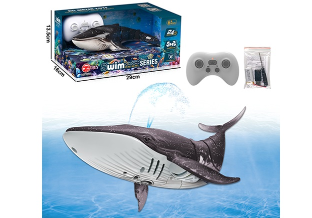 Реалистичен кит с дистанционно управление, който ще впечатли с естествените си движения и водни ефекти. Благодарение на гъвкавото тяло и перки, китът плува плавно и може да пръска вода, имитирайки истинско морско животно. Идеален за игра в басейн, вана или плитки води. В комплекта са включени кит, дистанционно управление, батерии и зарядно.