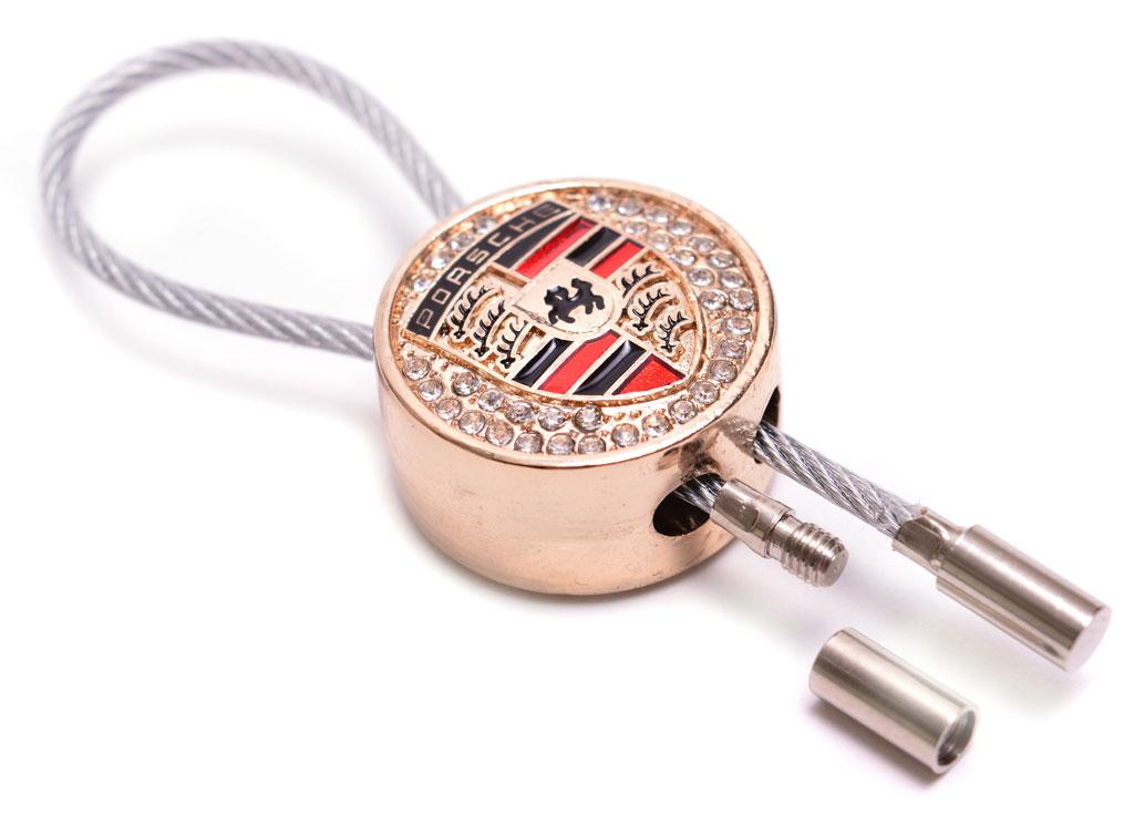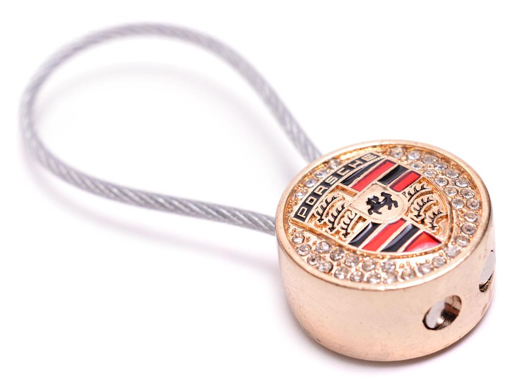 Елегантен метален ключодържател с емблема Porsche, декориран с малки камъчета за изтънчен и луксозен вид. Изработен от здрав метал с качествено покритие, подходящ за всекидневна употреба и подарък за фенове на марката.