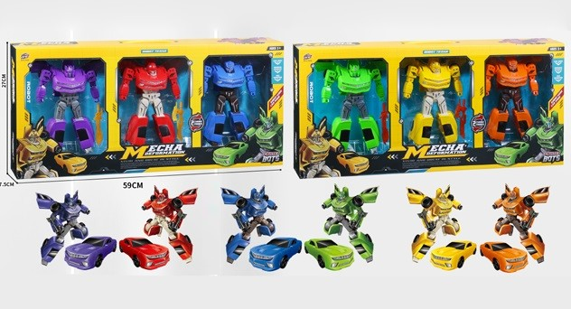 Епичен комплект трансформиращи се роботи тип Mecha, които само с няколко движения се превръщат в коли! Всеки робот има собствен цвят и стил, вдъхновен от състезателни модели, и впечатлява с масивна визия и готини детайли.