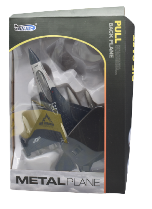 Военен изтребител в компактна версия за малки и големи фенове на авиацията. Моделът е изработен с метален корпус (die-cast) и детайлен силует на реактивен самолет, който изглежда отлично както в детската стая, така и в колекцията на големи „деца“.