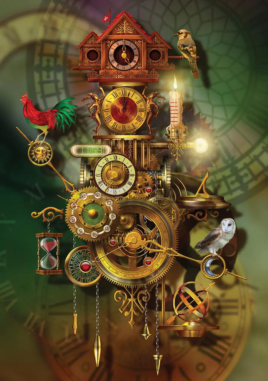 Наслади се на впечатляващото изкуство на Ciro Marchetti с пъзела Its About Time. Този висококачествен комплект съдържа 1500 части и представя изключително детайлна фантастична илюстрация, изпълнена с механизми, часовници и символични елементи.