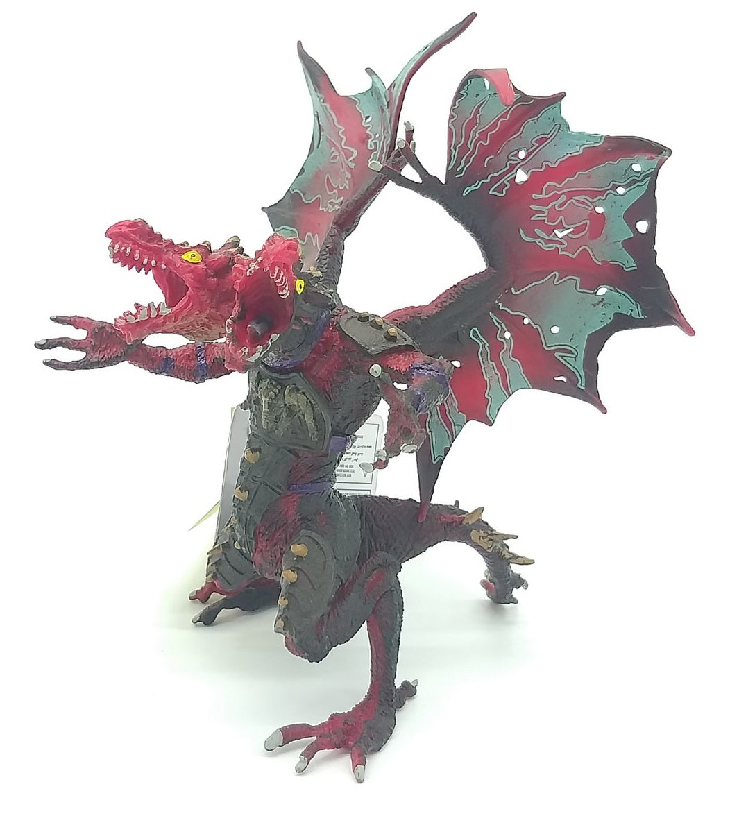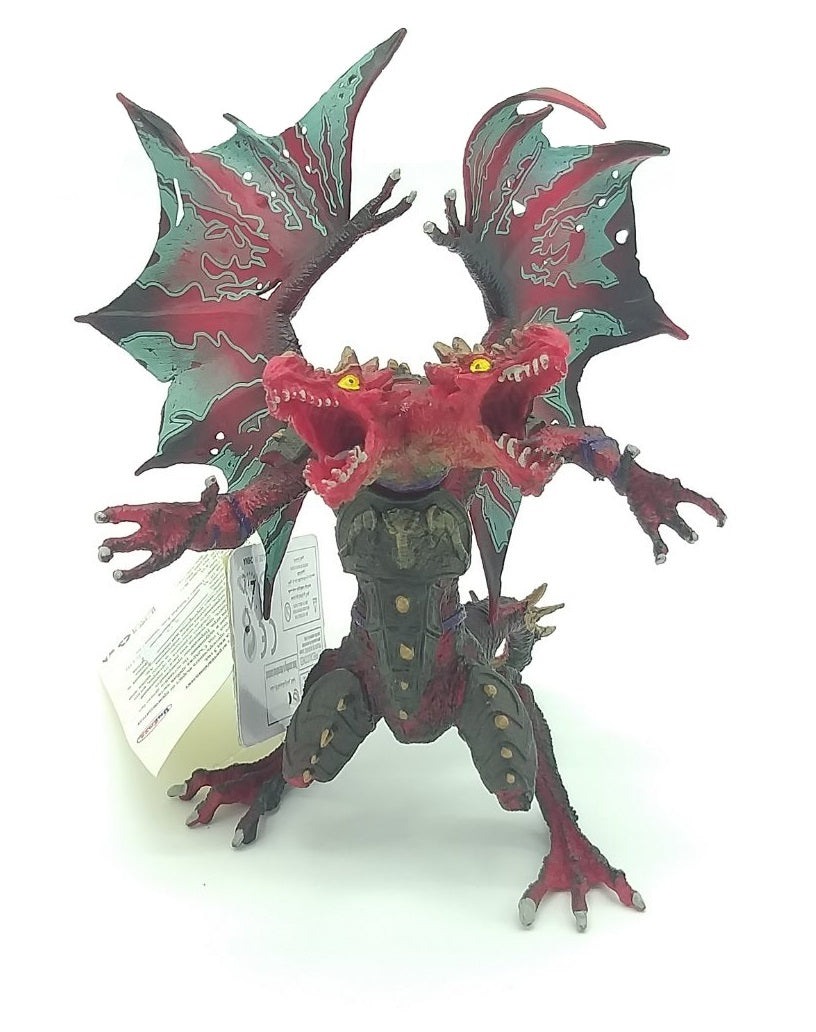Crimson Hydra Dragon е ярка, агресивна и силно детайлна фигурка на двуглав дракон, която веднага привлича вниманието. Комбинацията от червено, черно и акцентни зелени тонове, заедно с текстурирани криле и изваяни детайли по тялото, ѝ придават впечатляващ фентъзи вид.