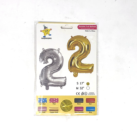 Фолиев балон във формата на цифра 2, подходящ за втори рожден ден, тематични украси или комбинация с други цифри за създаване на персонални дати и годишнини. Балонът има стилен металически ефект и стои отлично на снимки и декорирани маси.