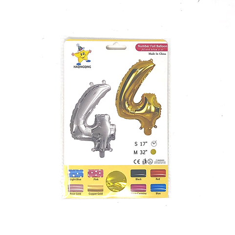 Фолиев балон във формата на цифра 4 – чудесен избор за рождени дни, годишнини и всякакви празнични поводи. Балонът е с красив металически ефект и се откроява отлично както в декорации, така и на снимки.