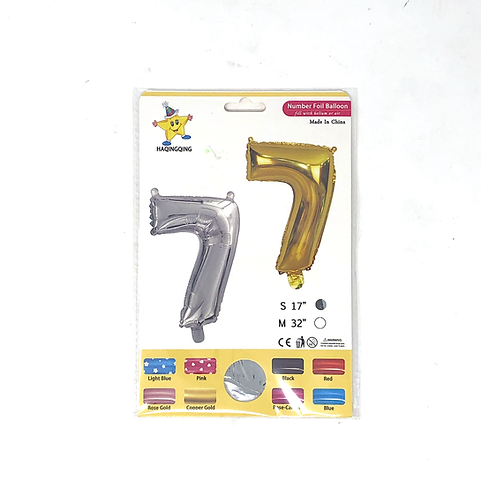 Фолиев балон във формата на цифра 7 – стилен акцент за всякакви празници. Подходящ за рождени дни, тематични партита, годишнини и декорации за снимки. Металическият му завършек придава ефектна визия както на малки, така и на големи тържества.