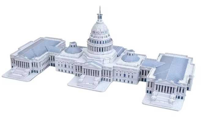Картонен 3D пъзел на сградата на Капитолия във Вашингтон. Моделът е лесен за сглобяване и предлага интересен начин да се запознаете с архитектурна забележителност. Подходящ за деца над 3 години и възрастни, които обичат пъзели и модели.