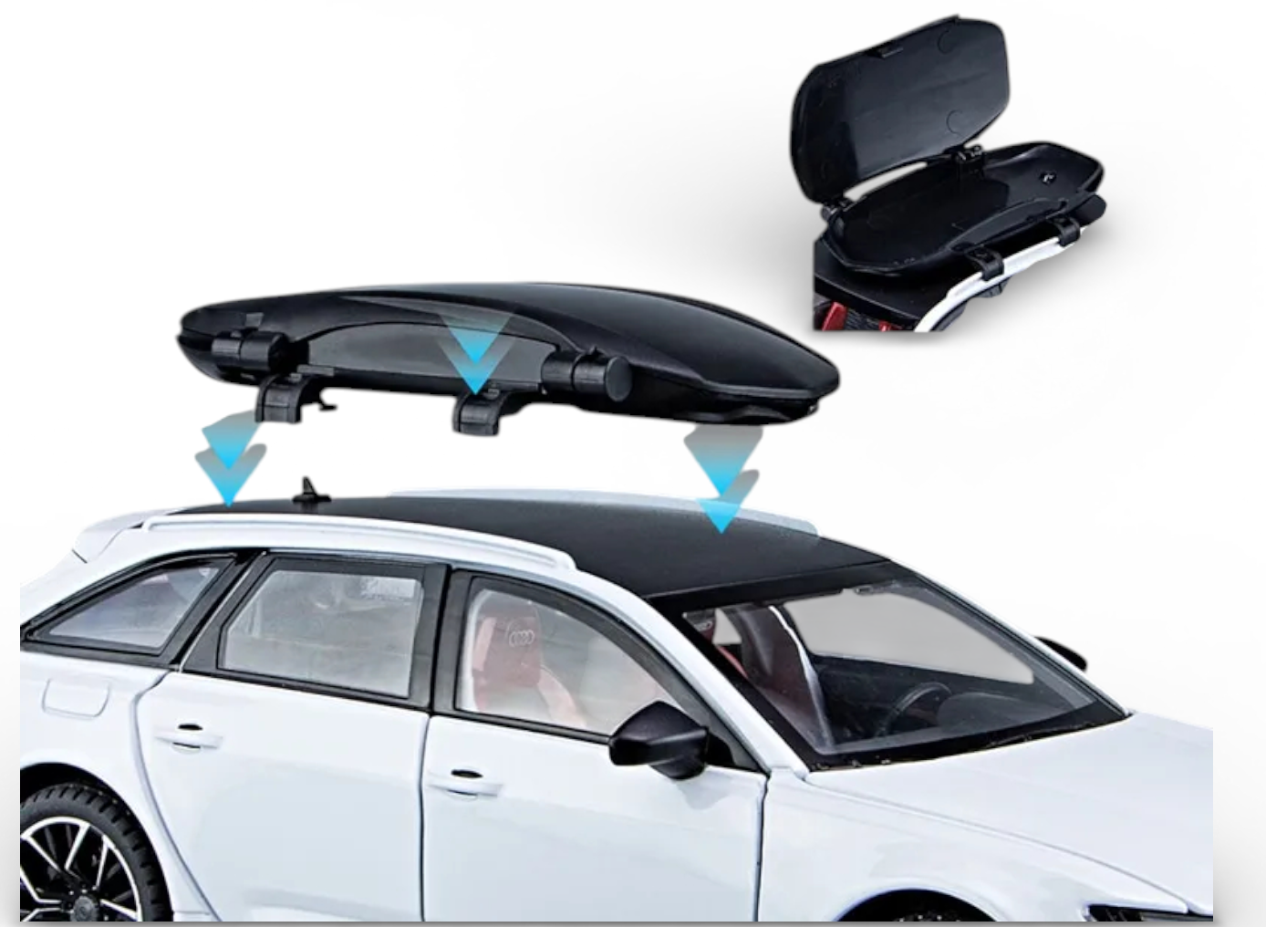 Бруталното Audi RS6 Avant вече е в умален вариант, който изглежда като истинско спортно комби паркирано на бюрото ти. Металният модел в мащаб 1:24 пресъздава агресивния дизайн, широката стойка и характерната решетка, а багажникът на покрива му дава още по-семейно-туристически вид.