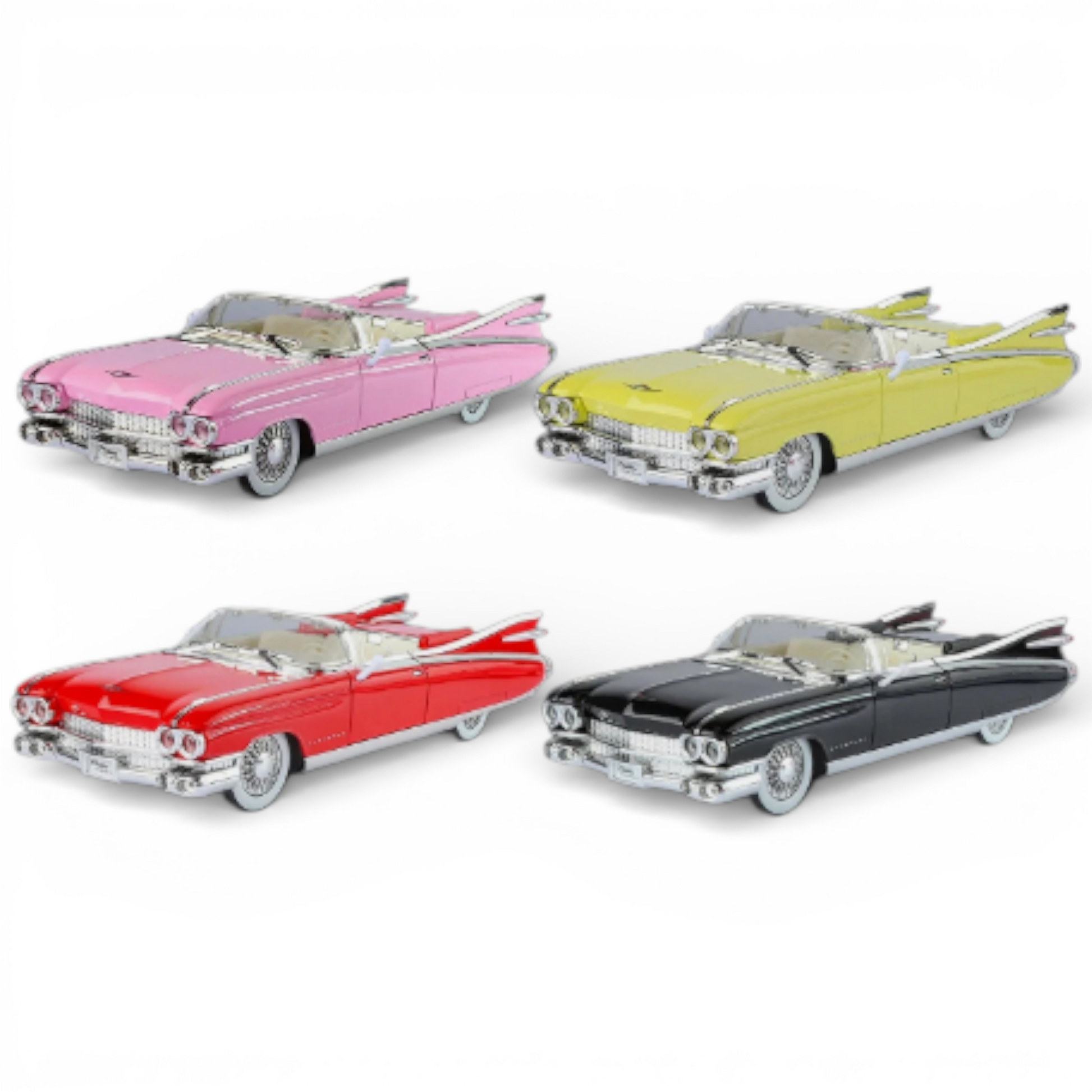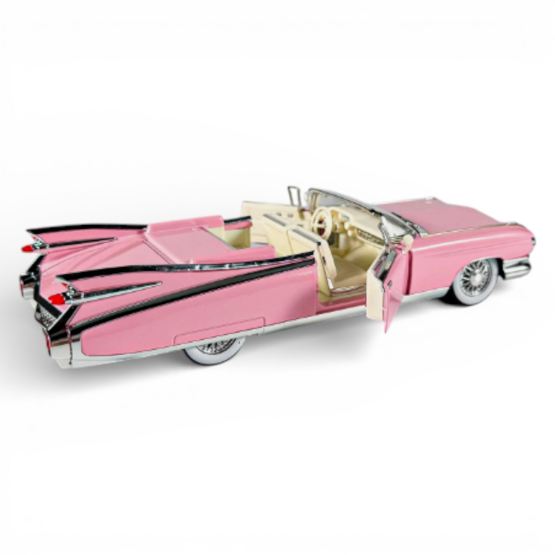 Този Cadillac Eldorado 1959 кабриолет в мащаб 1:24 е страхотен акцент за всяка витрина – дълги „перки“, хромирани детайли и ретро излъчване, което няма как да остане незабелязано.
