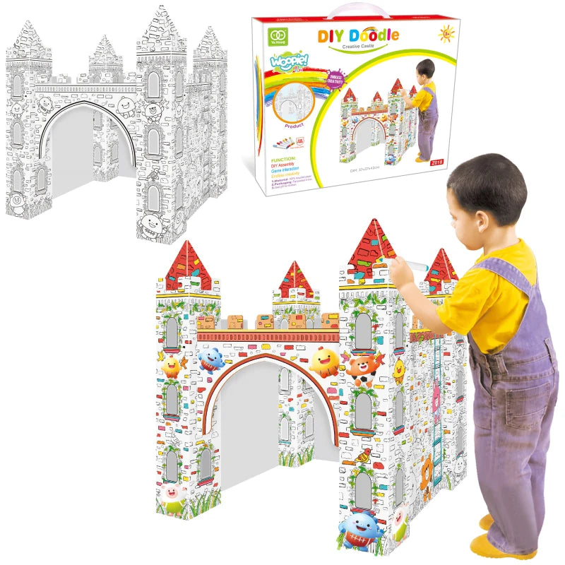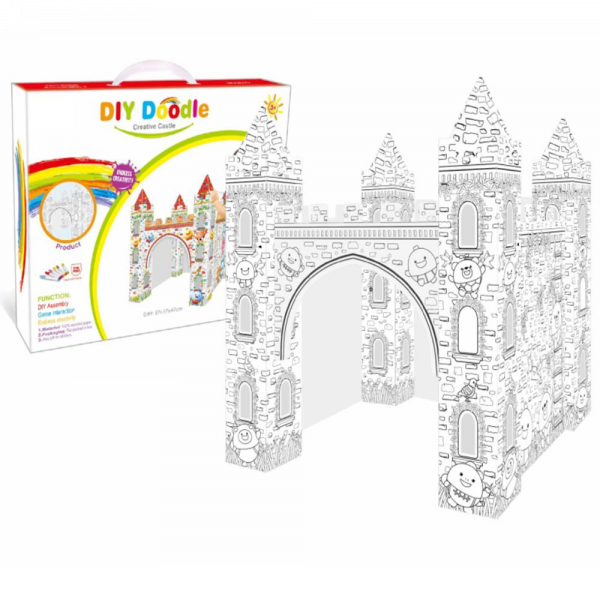 Потопи детето в свят на творчество и въображение с този голям DIY замък за оцветяване. Моделът се сглобява лесно, стои стабилно и предлага истинско забавление – боядисване, игра на ролеви сцени и украсяване по собствен вкус.