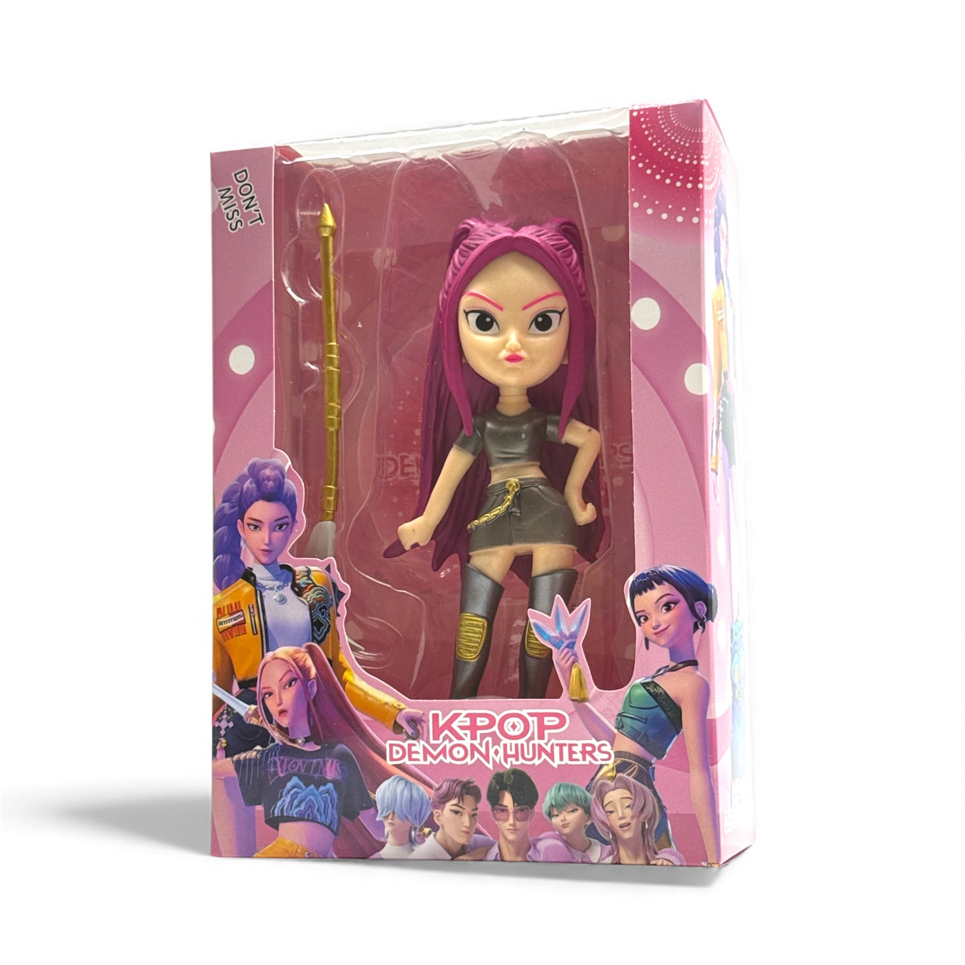 Кутията е в розово с целия екип на KPOP Demon Hunters – идеална за фенска колекция и подарък.