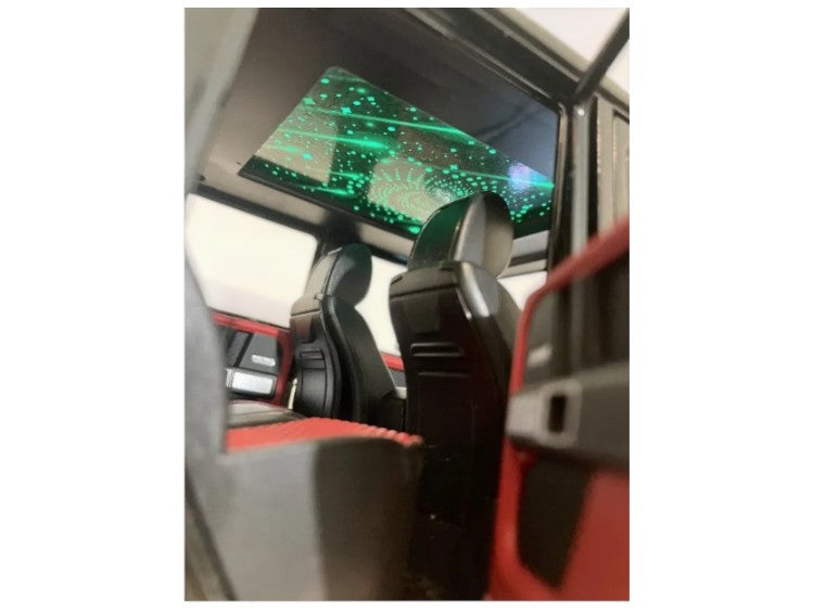 - 🌌 „Звездно небе“ на тавана – свети и постоянно сменя цветовете си. Отвътре има плъзгащ се панел на шибедаха, който може да се дръпне назад.