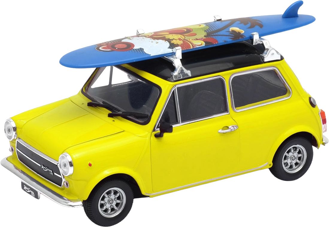 Mini Cooper 1300 - Жълт метален модел със сърф
