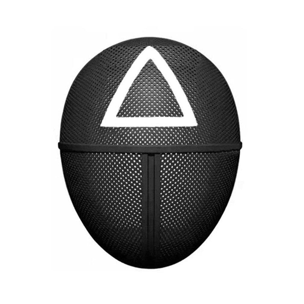 Черна маска в стилистиката на пазачите от сериала Squid Game, с ясно отличим триъгълен символ.