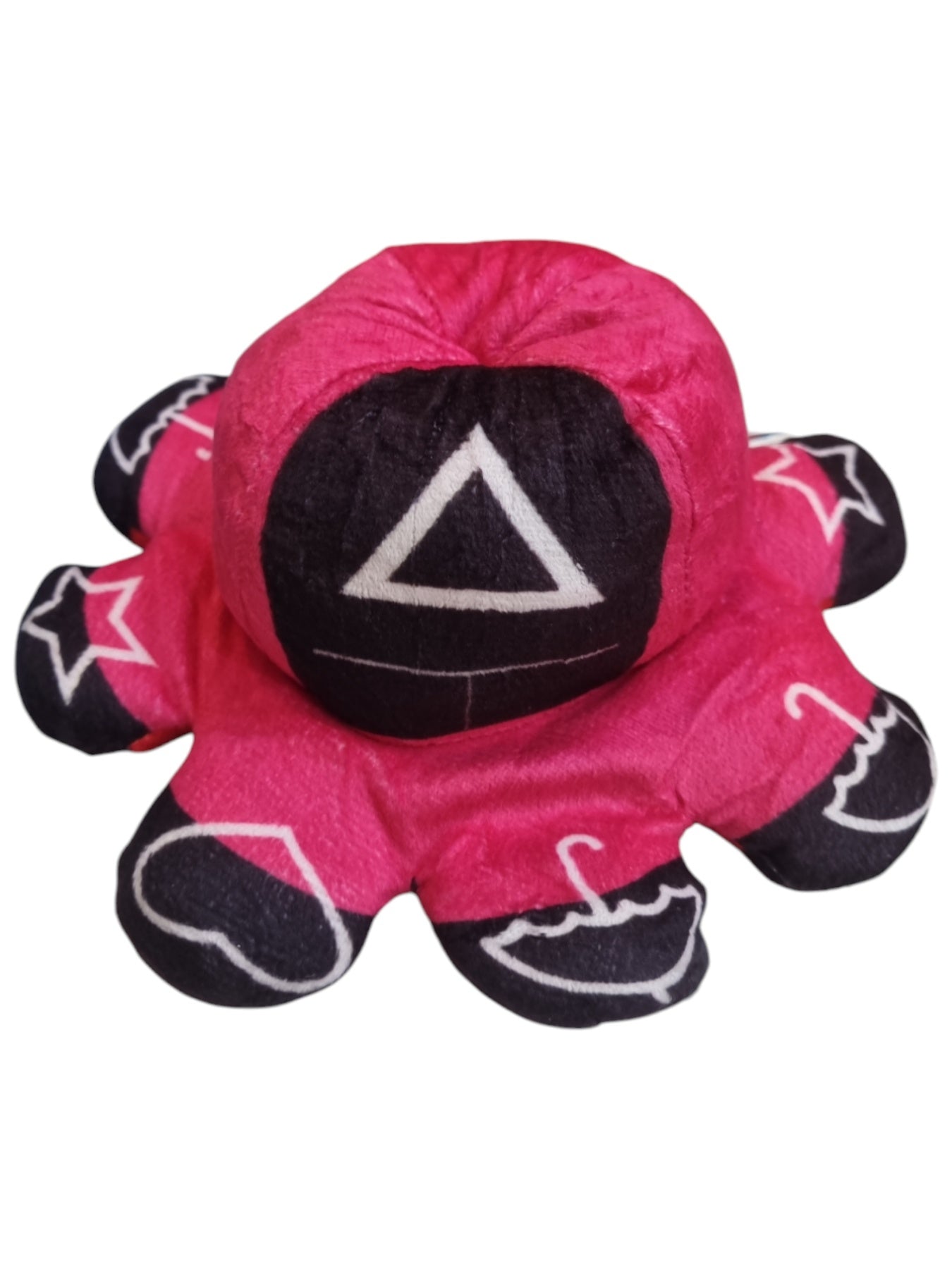 Меко плюшено октоподче в стилистиката на Squid Game – обръща се и променя визията си между различни символи (кръг / триъгълник).