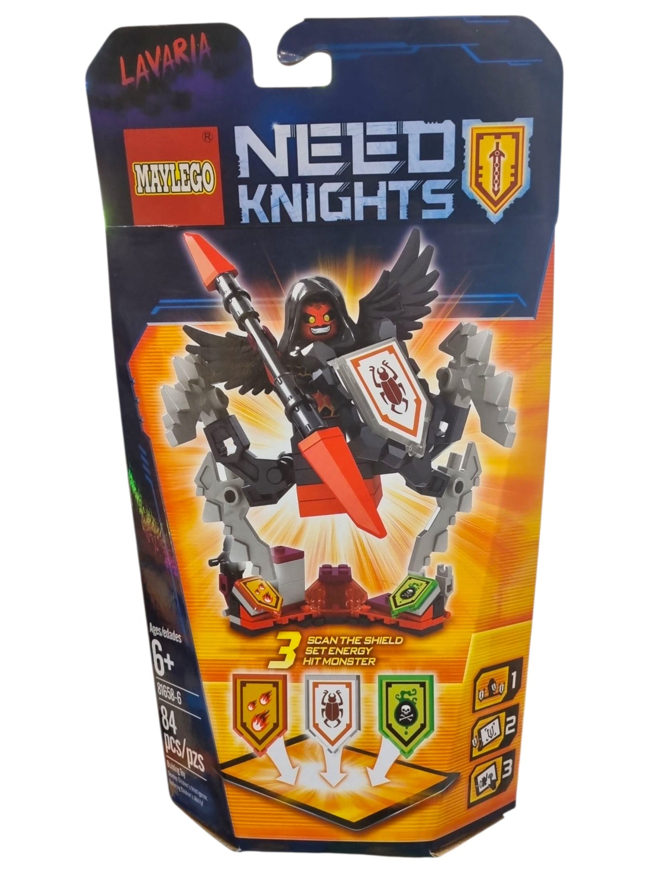 ⚔️ Need Knights Lavaria е впечатляваща сглобяема фигура, вдъхновена от света на Nexo Knights. Лавария е Lava чудовище – бързо, коварно и въоръжено с оръжие и щитове, готово за битка.